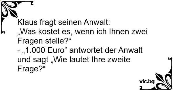 - „1.000 Euro“ antwortet der Anwalt und sagt „Wie lautet Ihre zweite Frage?“
