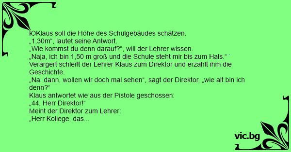 „Na, dann, wollen wir doch mal sehen“, sagt der Direktor, „wie alt bin ich denn?“