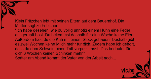 Klein Fritzchen lebt mit seinen Eltern auf dem Bauernhof. Die Mutter sagt zu Fritzchen: