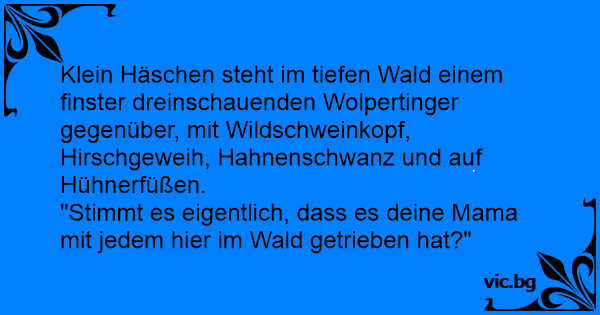 "Stimmt es eigentlich, dass es deine Mama mit jedem hier im Wald getrieben hat?"