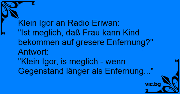 "Klein Igor, is meglich - wenn Gegenstand länger als Enfernung..."