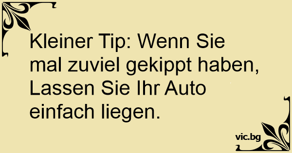 Kleiner Tip: Wenn Sie mal zuviel gekippt haben, Lassen Sie Ihr Auto einfach liegen.