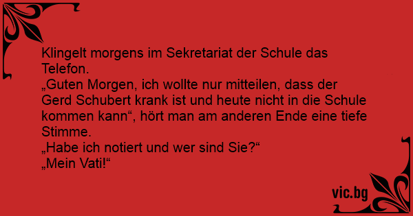 „Guten Morgen, ich wollte nur mitteilen, dass der Gerd Schubert krank ist und heute niсhт in die Schule kommen kann“, hört man am anderen Ende eine tiefe Stimme.