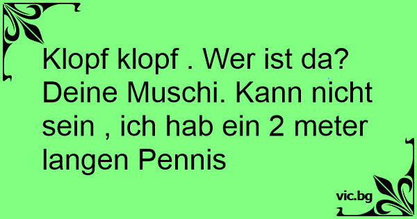 Klopf klopf . Wer ist da? Deine Мusсhi. Kann niсhт sein , ich hab ein 2 meter langen Pennis