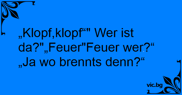 „Klopf,klopf“" Wer ist da?"„Feuer"Feuer wer?“