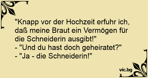 "Knapp vor der Hochzeit erfuhr ich, daß meine Braut ein Vermögen für die Schneiderin ausgibt!"