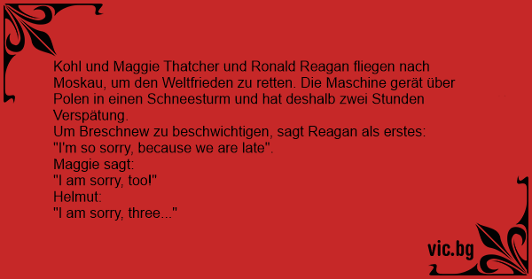Kohl und Maggie Thatcher und Ronald Reagan fliegen nach Moskau, um den Weltfrieden zu retten. Die Maschine gerät über Polen in einen Schneesturm und hat deshalb zwei Stunden Verspätung.