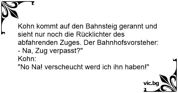 Kohn kommt auf den Bahnsteig gerannt und sieht nur noch die Rücklichter des abfahrenden Zuges. Der Bahnhofsvorsteher: