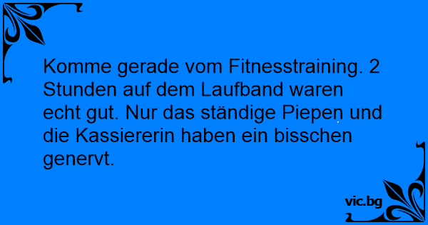 Komme gerade vom Fitnesstraining. 2 Stunden auf dem Laufband waren echt gut. Nur das ständige Piepen und die Kassiererin haben ein bisschen genervt.