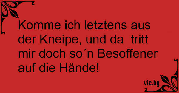 Komme ich letztens aus der Kneipe, und da tritt mir doch so´n Besoffener auf die Hände!