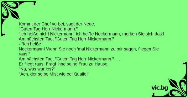 "Ich heiße niсhт Nickermann, ich heiße Neckermann, merken Sie sich das.!