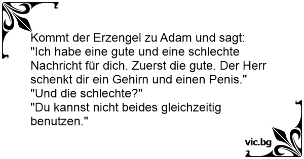 Isten így szól Ádámhoz : - Van egy jó és egy rossz hírem Számodra. - Előbb a jót mond - feleli Ádám. - Kapsz tőlem két ajándékot: agyat és Farkat. - Remek, és mi a rossz hír? - Nincs elég véred...