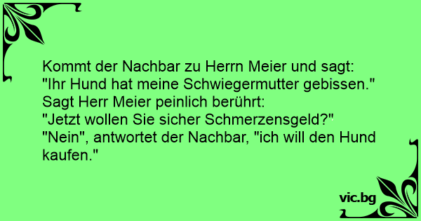 "Nein", antwortet der Nachbar, "ich will den Hund kaufen."