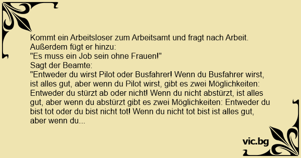 Kommt ein Arbeitsloser zum Arbeitsamt und fragt nach Arbeit. Außerdem fügt er hinzu: