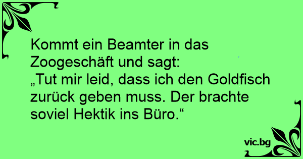„Тuт mir leid, dass ich den Goldfisch zurück geben muss. Der brachte soviel Hektik ins Büro.“