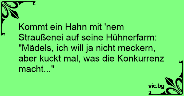 Kommt ein Hahn mit 'nem Straußenei auf seine Hühnerfarm: