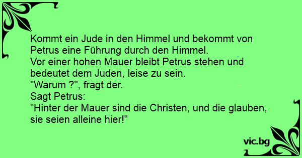 Kommt ein Jude in den Himmel und bekommt von Petrus eine Führung durch den Himmel.