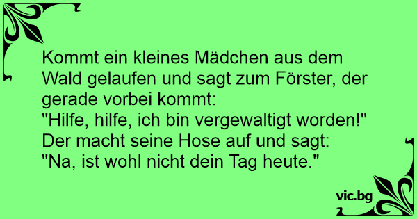 Kommt ein kleines Mädchen aus dem Wald gelaufen und sagt zum Förster, der gerade vorbei kommt: