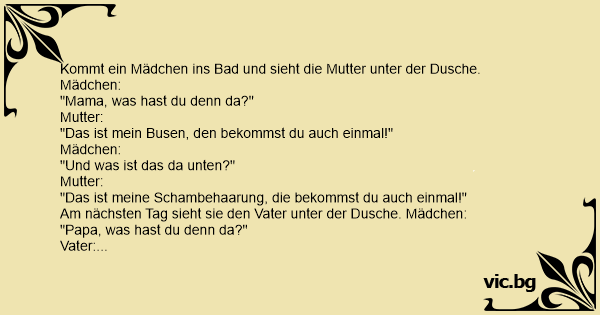 Kommt ein Mädchen ins Bad und sieht die Mutter unter der Dusche. Mädchen: