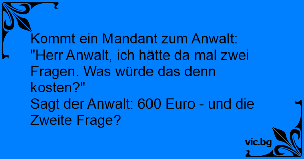 Sagt der Anwalt: 600 Euro - und die Zweite Frage?