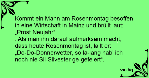. Als man ihn darauf aufmerksam macht, dass heute Rosenmontag ist, lallt er: