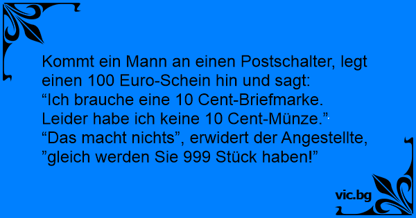 Kommt ein Mann an einen Postschalter, legt einen 100 Euro-Schein hin und sagt: