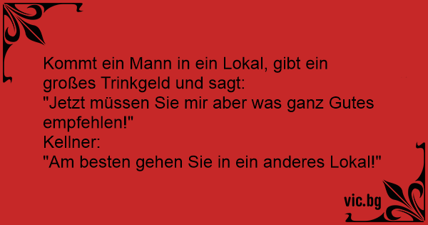 Kommt ein Mann in ein Lokal, gibt ein großes Trinkgeld und sagt: