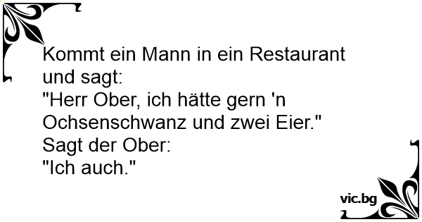 "Herr Ober, ich hätte gern 'n Ochsenschwanz und zwei Eier."