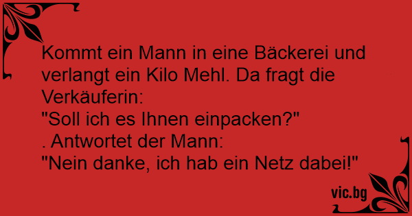 Kommt ein Mann in eine Bäckerei und verlangt ein Kilo Mehl. Da fragt die Verkäuferin: