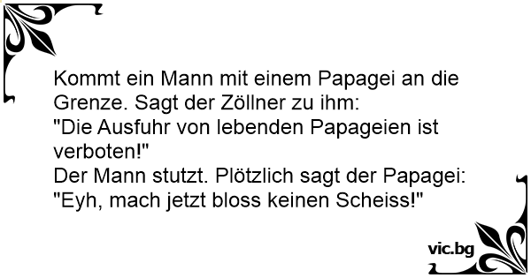 Kommt ein Mann mit einem Papagei an die Grenze. Sagt der Zöllner zu ihm:
