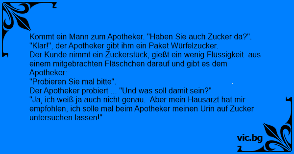 Kommt ein Mann zum Apotheker. "Haben Sie auch Zucker da?".