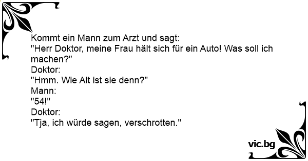 "Herr Doktor, meine Frau hält sich für ein Auto! Was soll ich machen?"