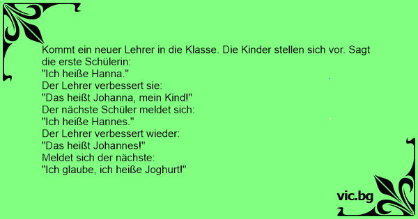 Kommt ein neuer Lehrer in die Klasse. Die Kinder stellen sich vor. Sagt die erste Schülerin: