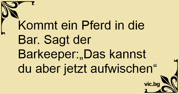 Kommt ein Pferd in die Bar. Sagt der Barkeeper:„Das kannst du aber jetzt aufwischen“