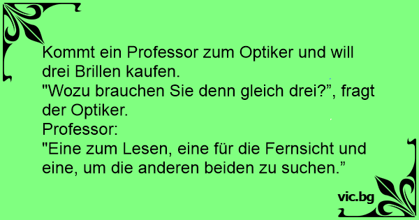 Kommt ein Professor zum Optiker und will drei Brillen kaufen.