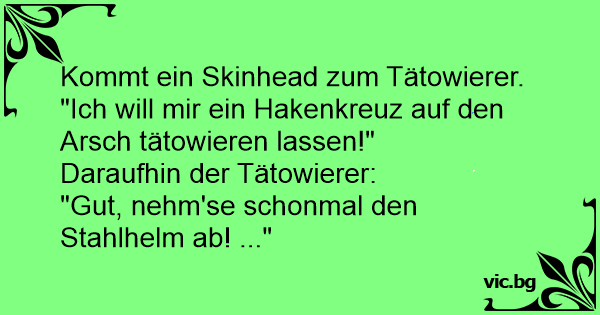 Kommt ein Skinhead zum Tätowierer. "Ich will mir ein Hakenkreuz auf den Аrsсh tätowieren lassen!"