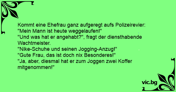 "Ja, aber, diesmal hat er zum Joggen zwei Koffer mitgenommen!"