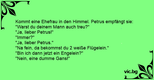 Kommt eine Ehefrau in den Himmel. Petrus empfängt sie: