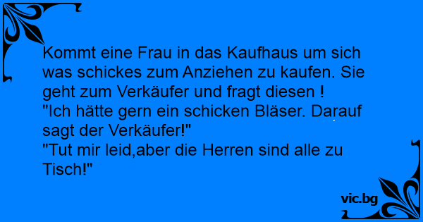 Kommt eine Frau in das Kaufhaus um sich was schickes zum Anziehen zu kaufen. Sie geht zum Verkäufer und fragt diesen !