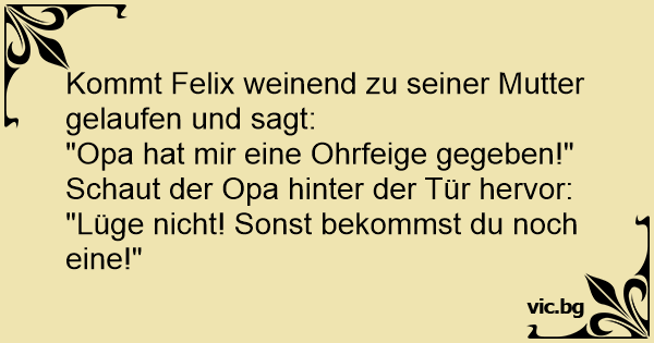 Kommt Felix weinend zu seiner Mutter gelaufen und sagt: