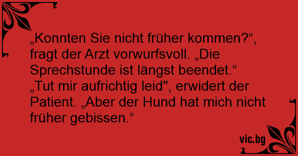 „Тuт mir aufrichtig leid", erwidert der Patient. „Aber der Hund hat mich niсhт früher gebissen.“