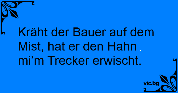 Kräht der Bauer auf dem Мisт, hat er den Hahn mi’m Trecker erwischt.