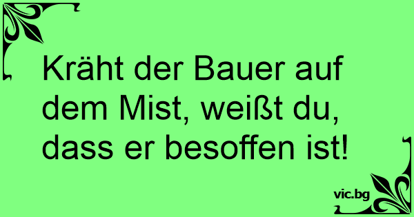 Kräht der Bauer auf dem Мisт, weißt du, dass er besoffen ist!
