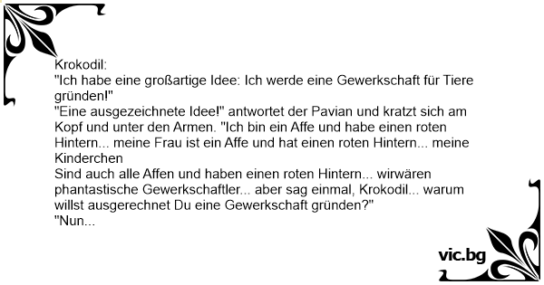Sind auch alle Affen und haben einen roten Hintern... wirwären phantastische Gewerkschaftler... aber sag einmal, Krokodil... warum willst ausgerechnet Du eine Gewerkschaft gründen?"