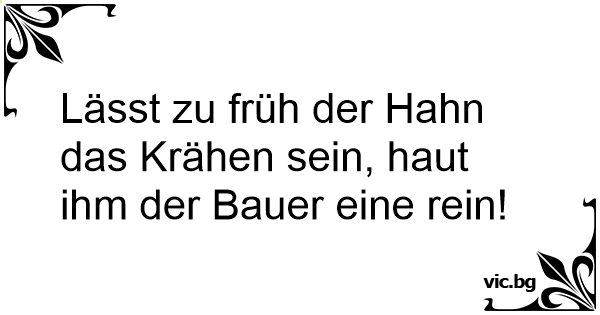 Lässt zu früh der Hahn das Krähen sein, haut ihm der Bauer eine rein!