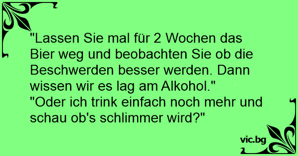 "Lassen Sie mal für 2 Wochen das Bier weg und beobachten Sie ob die Beschwerden besser werden. Dann wissen wir es lag am Alkohol."