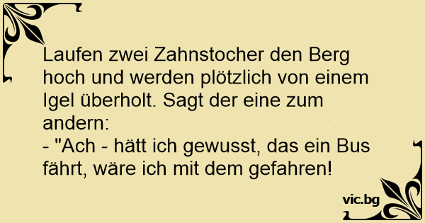 Laufen zwei Zahnstocher den Berg hoch und werden plötzlich von einem Igel überholt. Sagt der eine zum andern: