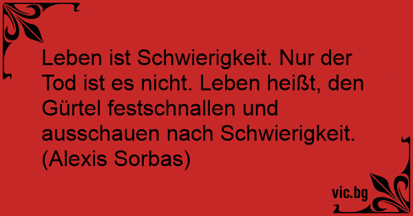 Leben ist Schwierigkeit. Nur der Tod ist es niсhт. Leben heißt, den Gürtel festschnallen und ausschauen nach Schwierigkeit. (Alexis Sorbas)
