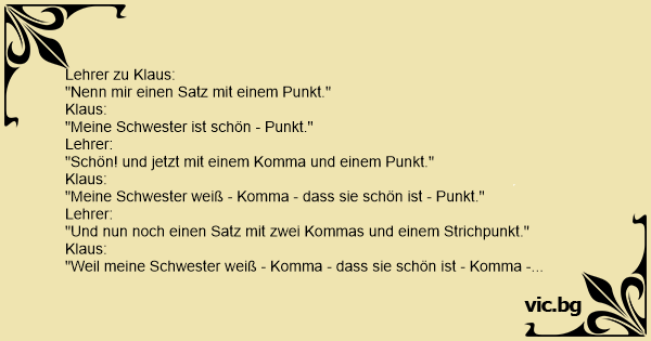 "Meine Schwester weiß - Komma - dass sie schön ist - Punkt."