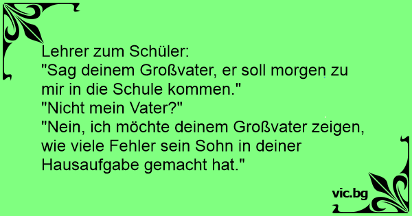 - Иванчо, кажи на дядо ти утре да дойде в училище. - Искате да кажете "баща ти"? - Не, казах дядо ти. Искам да му покажа колко грешки е направил сина му на домашното ти